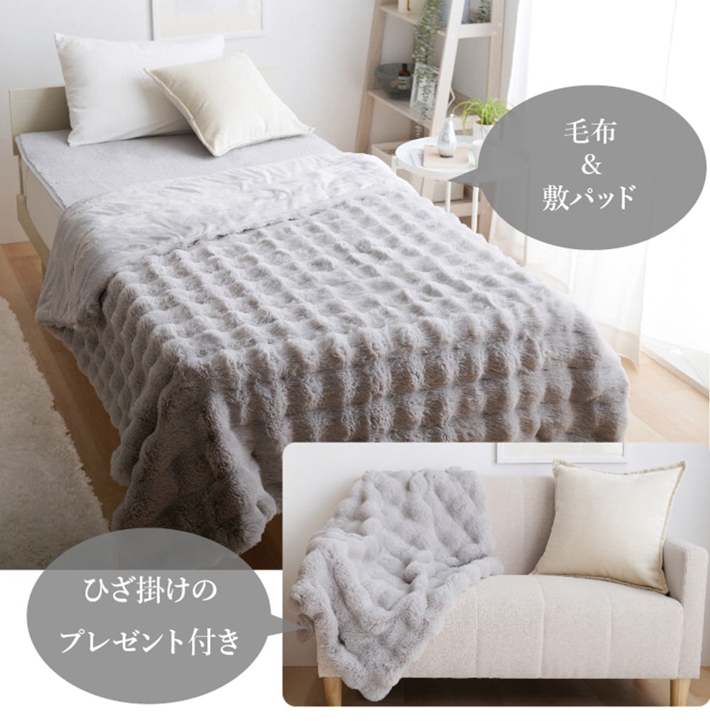 掛け毛布×1枚、敷き毛布×1枚、ひざ掛け×1枚