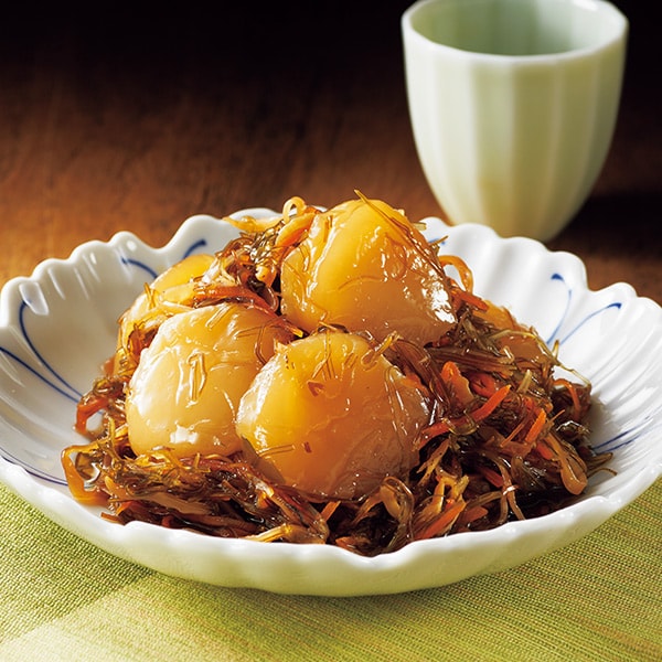 ●セット内容/250g×4袋 ●賞味期限/製造日から冷凍6ヶ月 ●加工地/日本 ●原材料/真昆布(北海道産)、帆立貝柱(北海道産)、にんじん、しょうゆ、砂糖混合ぶどう糖果糖液糖、水あめ、スルメイカ、みりん、がごめ昆布、かつおエキス、食塩、昆布エキス、調味酢(りんごを含む)/ソルビット、調味料(アミノ酸等)、酒精、pH調整剤、増粘多糖類、酸化防止剤(V.C)、ビタミンB1、酵素 ●特定原材料等 /小麦・いか・大豆・りんご