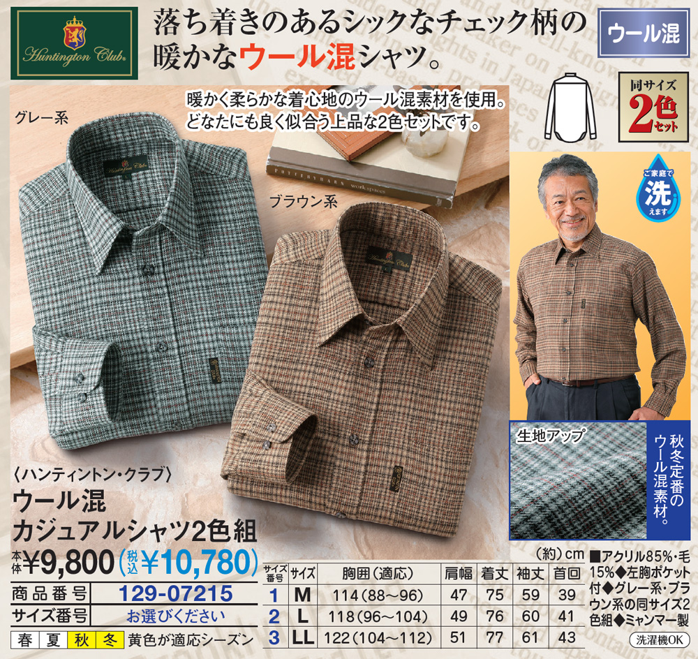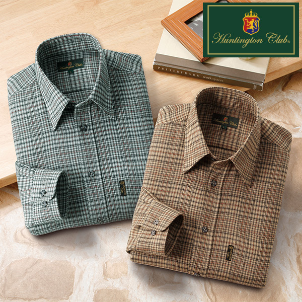 落ち着きのあるシックなチェック柄の暖かなウール混シャツ! 暖かく柔らかな着心地のウール混素材を使用。どなたにも良く似合う上品な2色セットです。 秋冬定番のウール混素材。 ●同サイズ2色セット ●ウール混