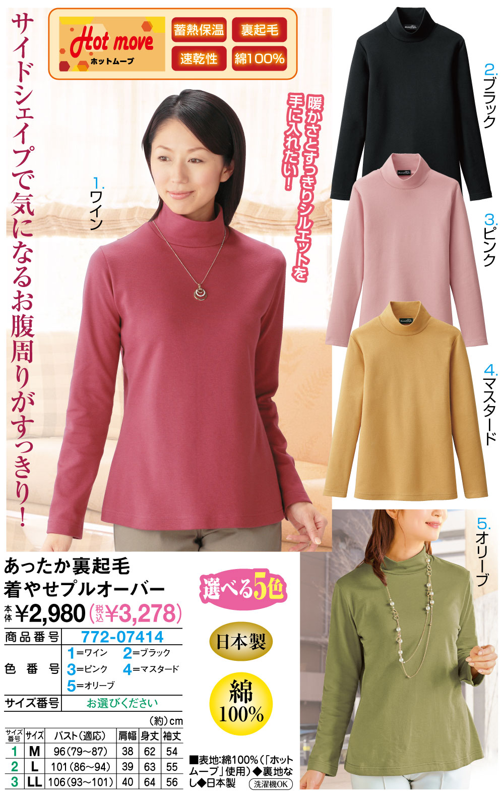 サイドシェイプで気になるお腹周りがすっきり! 暖かさとすっきりシルエットを手に入れたい! 【Hot move ホットムーブ】 蓄熱保温・裏起毛・速乾性・綿100%