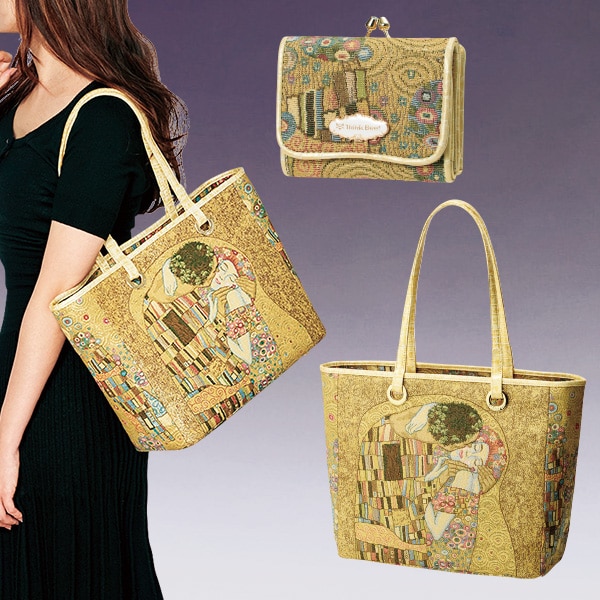 クリムトの名画「接吻」にうっとり。A4サイズ収納可能の大容量トート。
