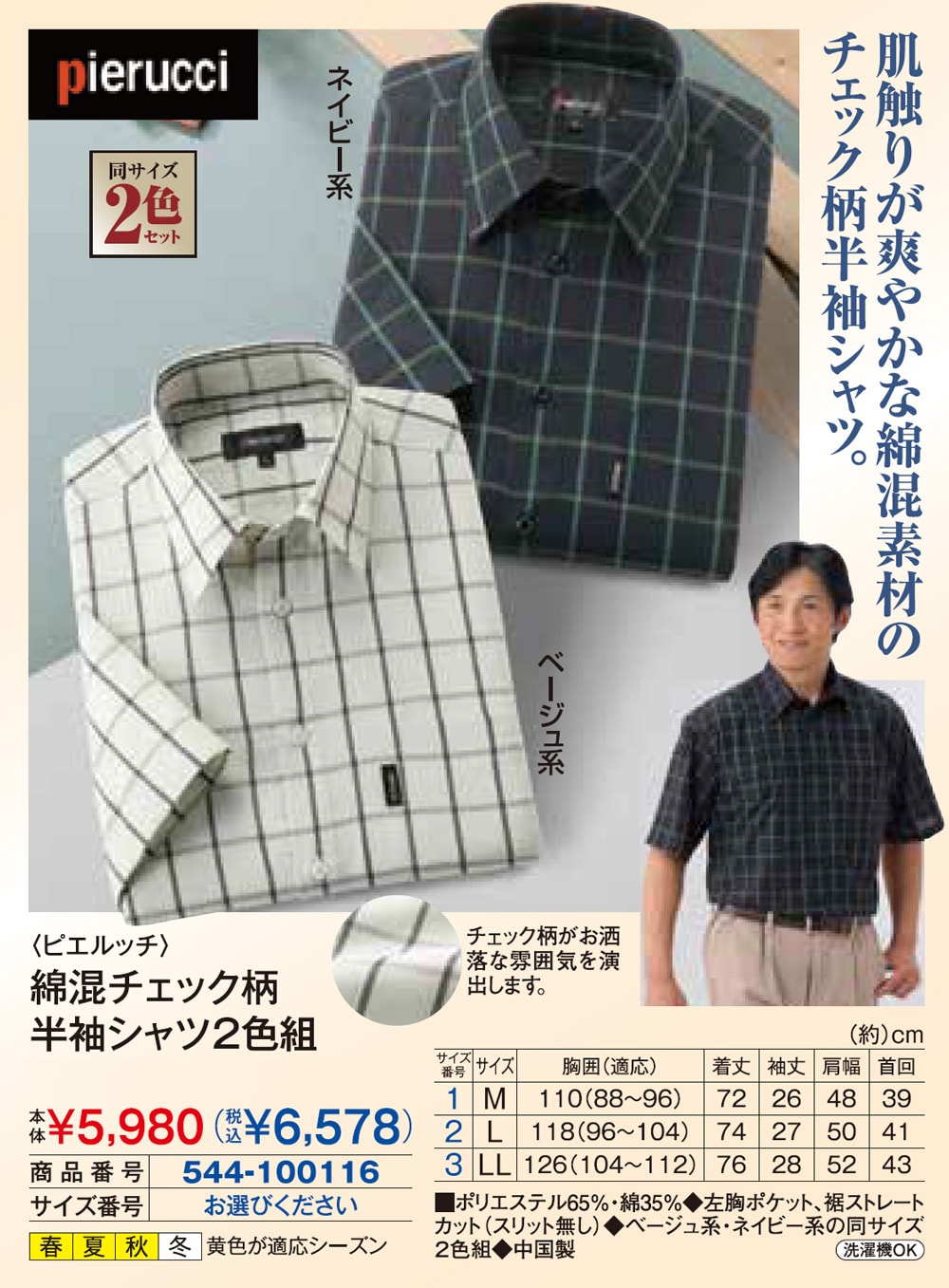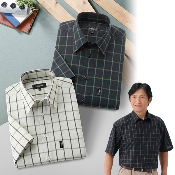 肌触りが爽やかな綿混素材のチェック柄半袖シャツ。 チェック柄がお洒落な雰囲気を演出します。 ◎同サイズ2色セット