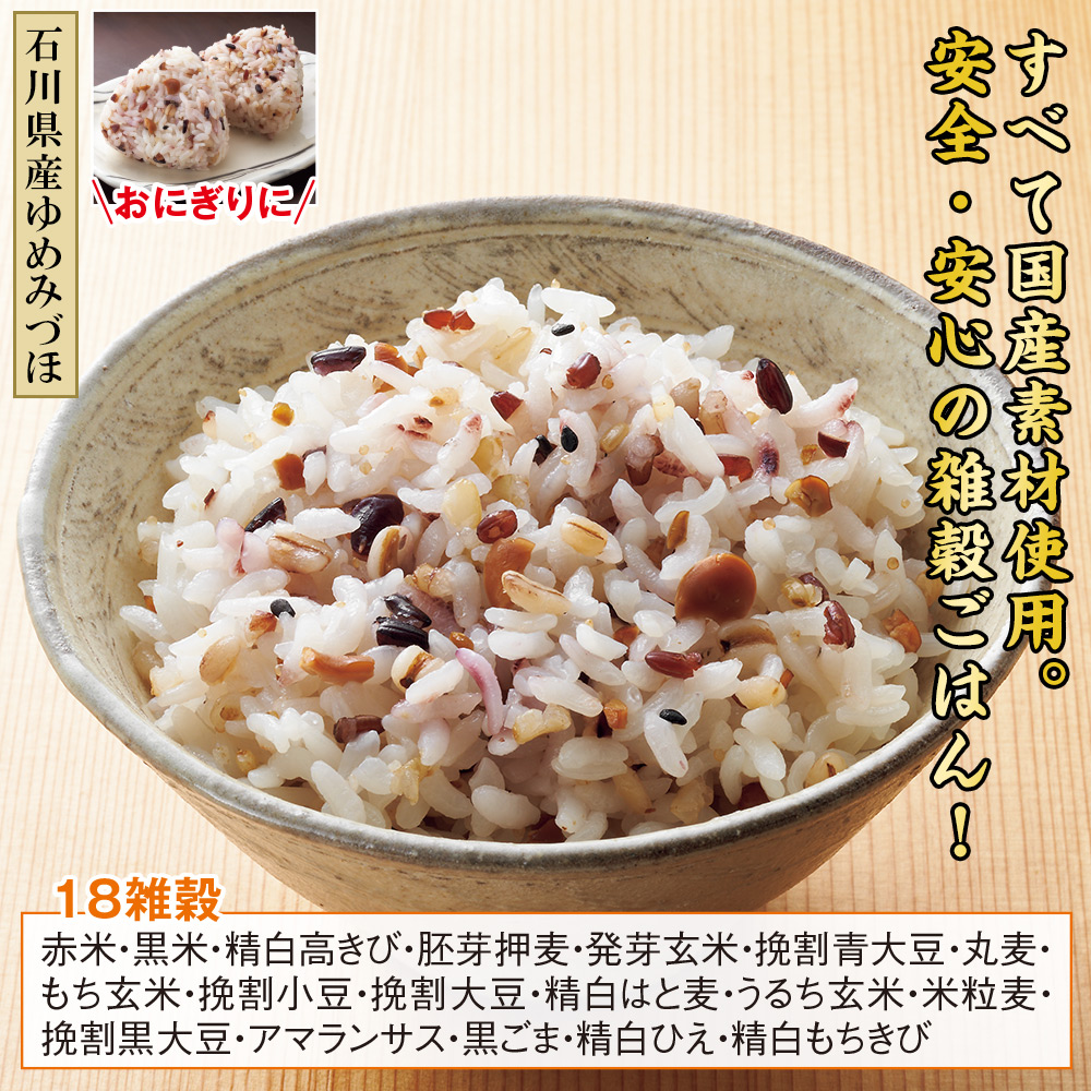 【石川県産ゆめみづほ】 18雑穀 赤米・黒米・精白高きび・胚芽押麦・発芽玄米・挽割青大豆・丸麦・もち玄米・挽割小豆・挽割大豆・精白はと麦・うるち玄米・米粒麦・挽割黒大豆・アマランサス・黒ごま・精白ひえ・精白もちきび