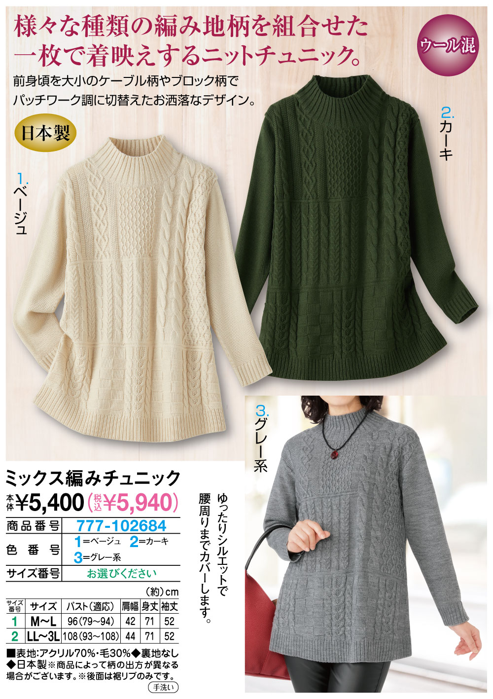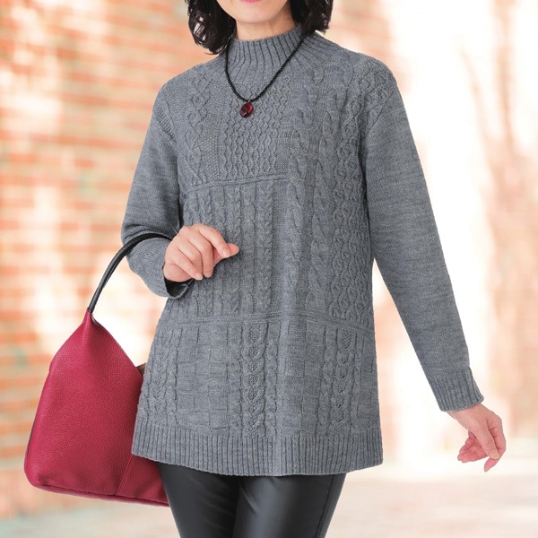 様々な種類の編み地柄を組み合わせた、一枚で着映えするニットチュニック!