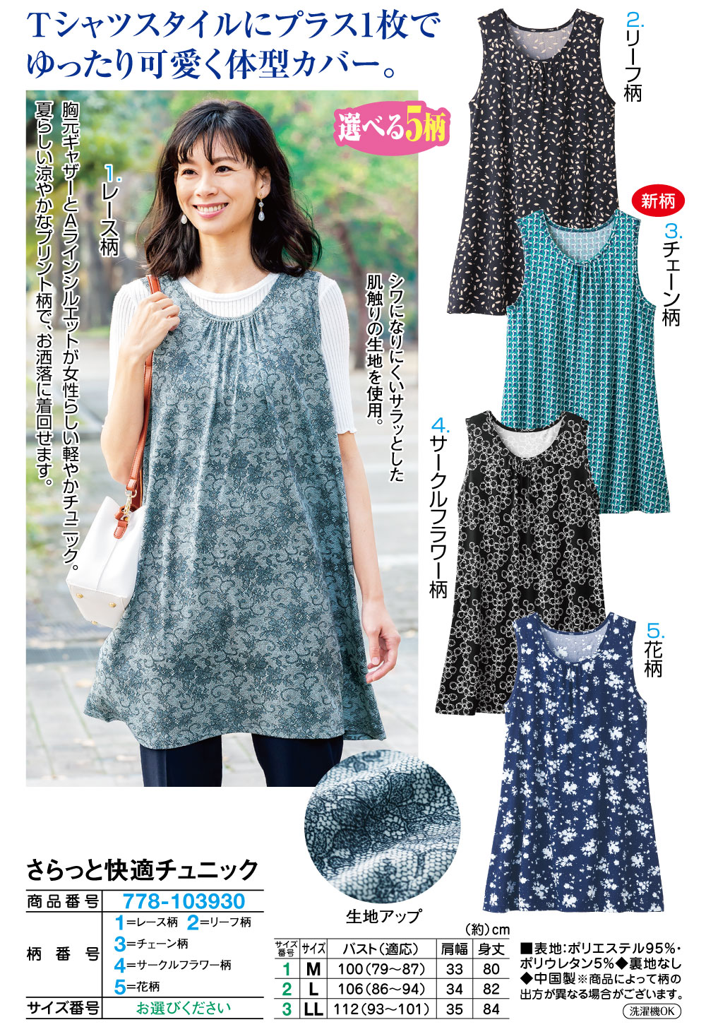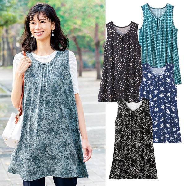 夏らしい涼やかなプリント柄で、お洒落に着回せます。