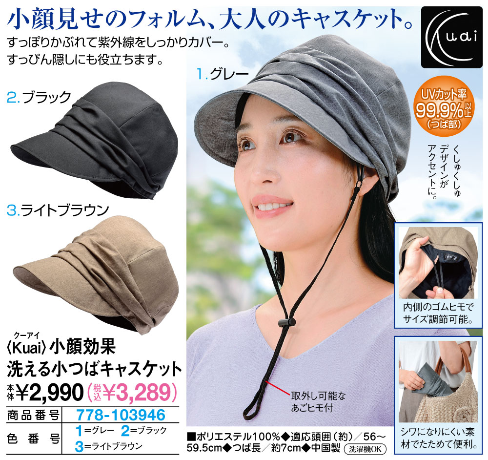 すっぽりかぶれて紫外線をしっかりカバー。すっぴん隠しにも役立ちます。