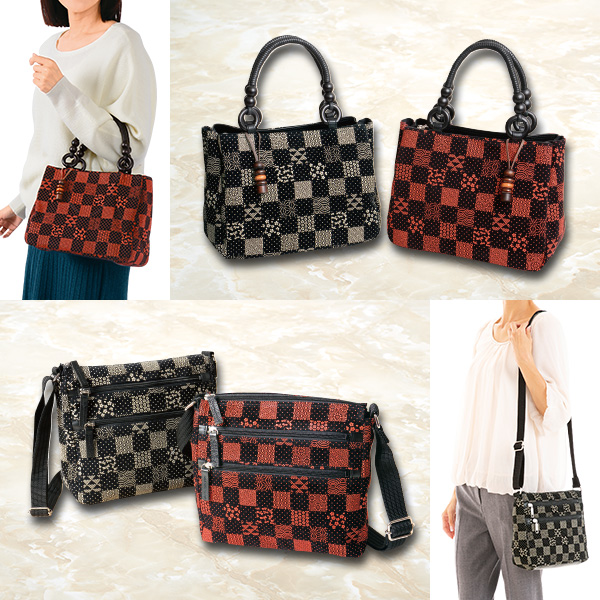 京都の老舗鞄店が手掛けた高級感のある印伝調バッグ! 繁栄を意味する市松模様の中にも、トンボや桜、波など日本伝統の縁起柄が! ウッドチャームがアクセントに! 程良いサイズ感で和洋どちらの装いにもぴったり。 整理整頓できる3層構造で高い収納力。 【笹井源商店の鞄】 創業明治35年 京都 川端七条 笹井源商店の鞄 made in Kyoto since 1902