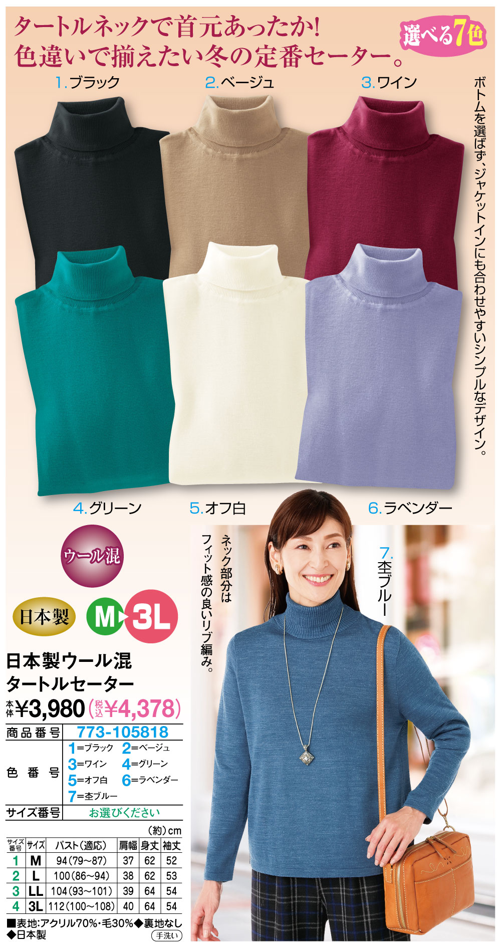 日本製ウール混タートルセーター