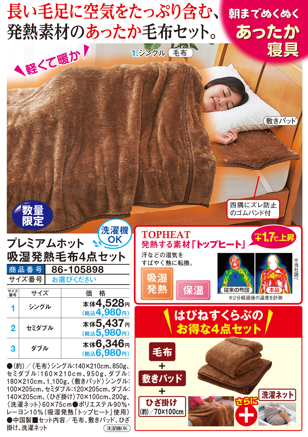 プレミアムホット吸湿発熱毛布4点セット