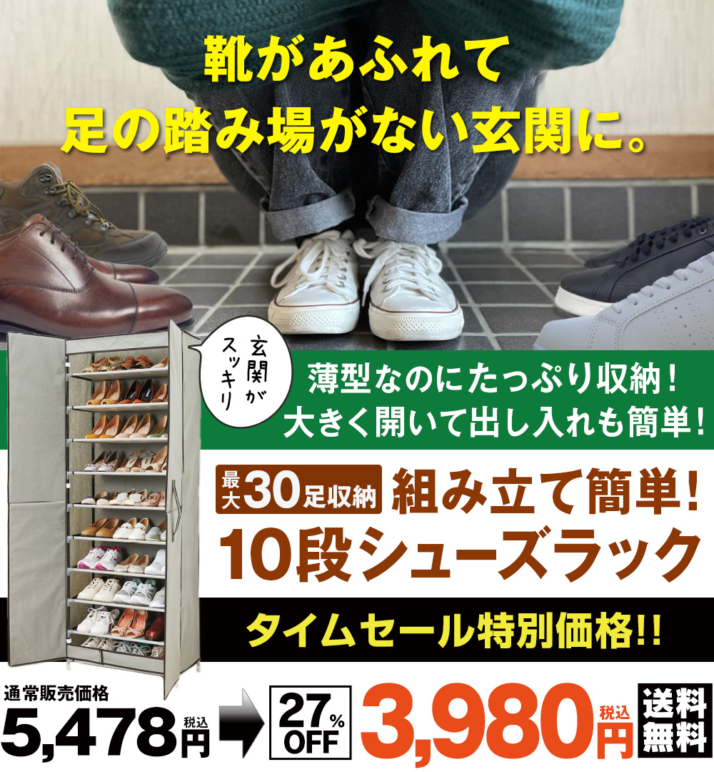 省スペースでスッキリ&たっぷり収納! 玄関にあふれた靴を・・・スッキリ! ◎ホコリを防ぐマグネット付扉 ◎組立時に棚板の段数を変更可能 ◎棚数を調節するとブーツも収納できます ◎工具不要:組立簡単