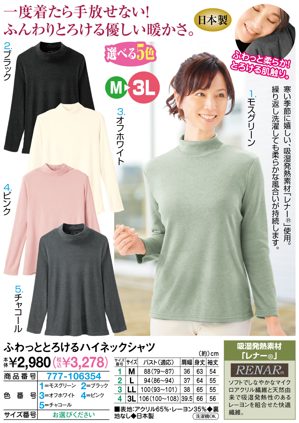 寒い季節に嬉しい、吸湿発熱素材「レナー(R)」使用。