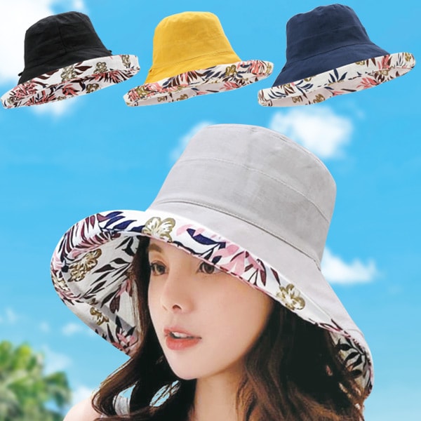 無地×ボタニカル柄がお洒落なリバーシブル帽子!