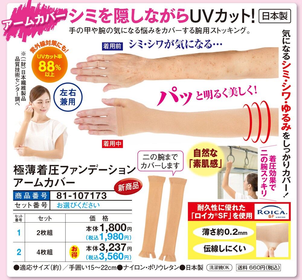 手の甲や腕の気になる悩みをカバーする腕用ストッキング。