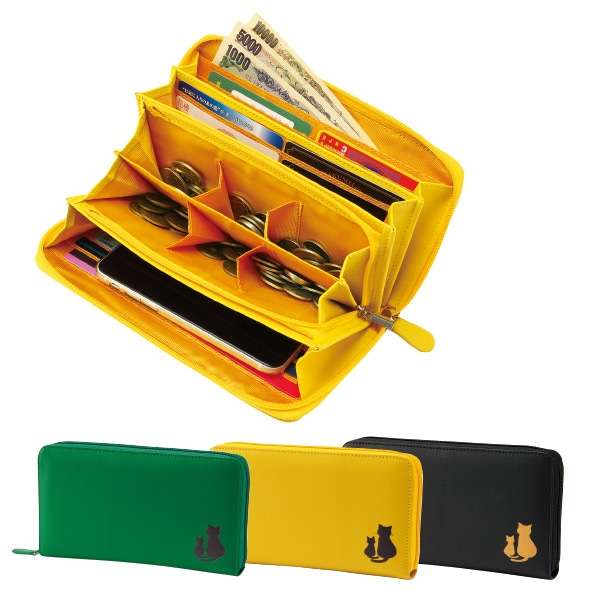 ネコのシルエットが可愛い多機能長財布! たっぷり収納できて整理整頓もOK、出し入れらくらくで支払いもスムーズ。 小銭入れは仕分けができる6室構造! ガバッと大きく開くジャバラ式 スマホも入る便利な設計 カードは36枚収納OK! 背面には可愛い足跡が!