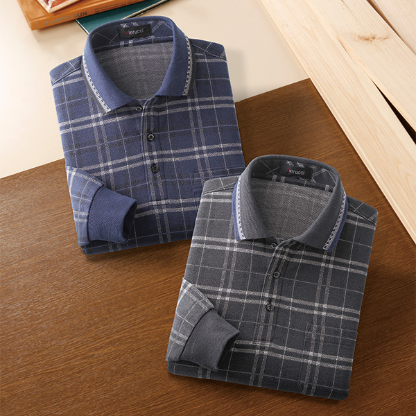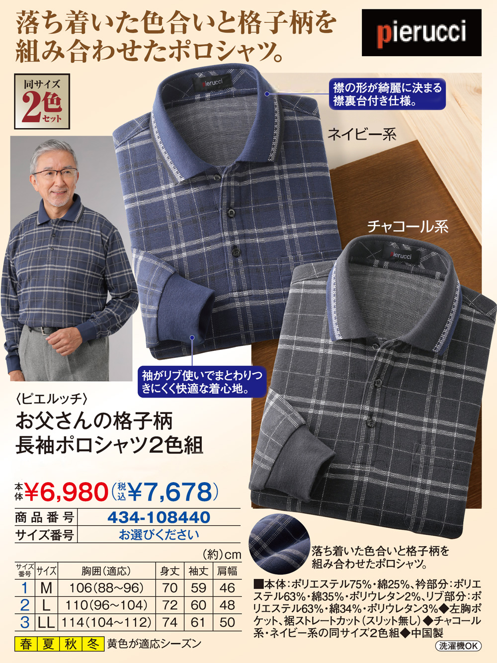 落ち着いた色合いと格子柄を組み合わせたポロシャツ。 襟の形が綺麗に決まる襟裏台付き仕様。 袖がリブ使いでまとわりつきにくく快適な着心地。 落ち着いた色合いと格子柄を組み合わせたポロシャツ。 同サイズ2色セット