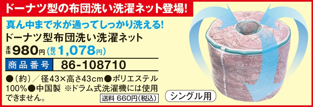 真ん中まで水が通ってしっかり洗える! 厳選冬じたくセレクション! ベストヒット商品で今冬も快適に! ドーナツ型の布団洗い洗濯ネット登場! ●シングル用
