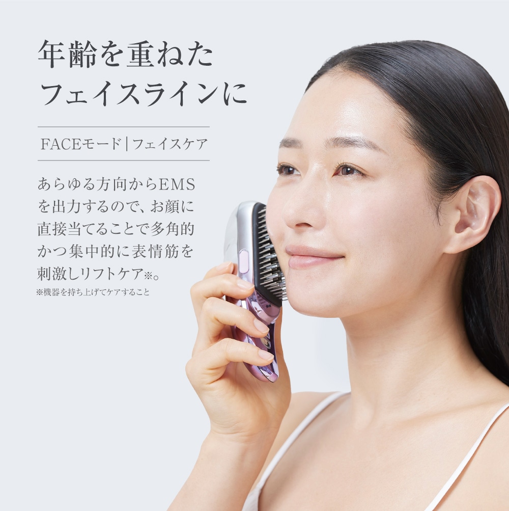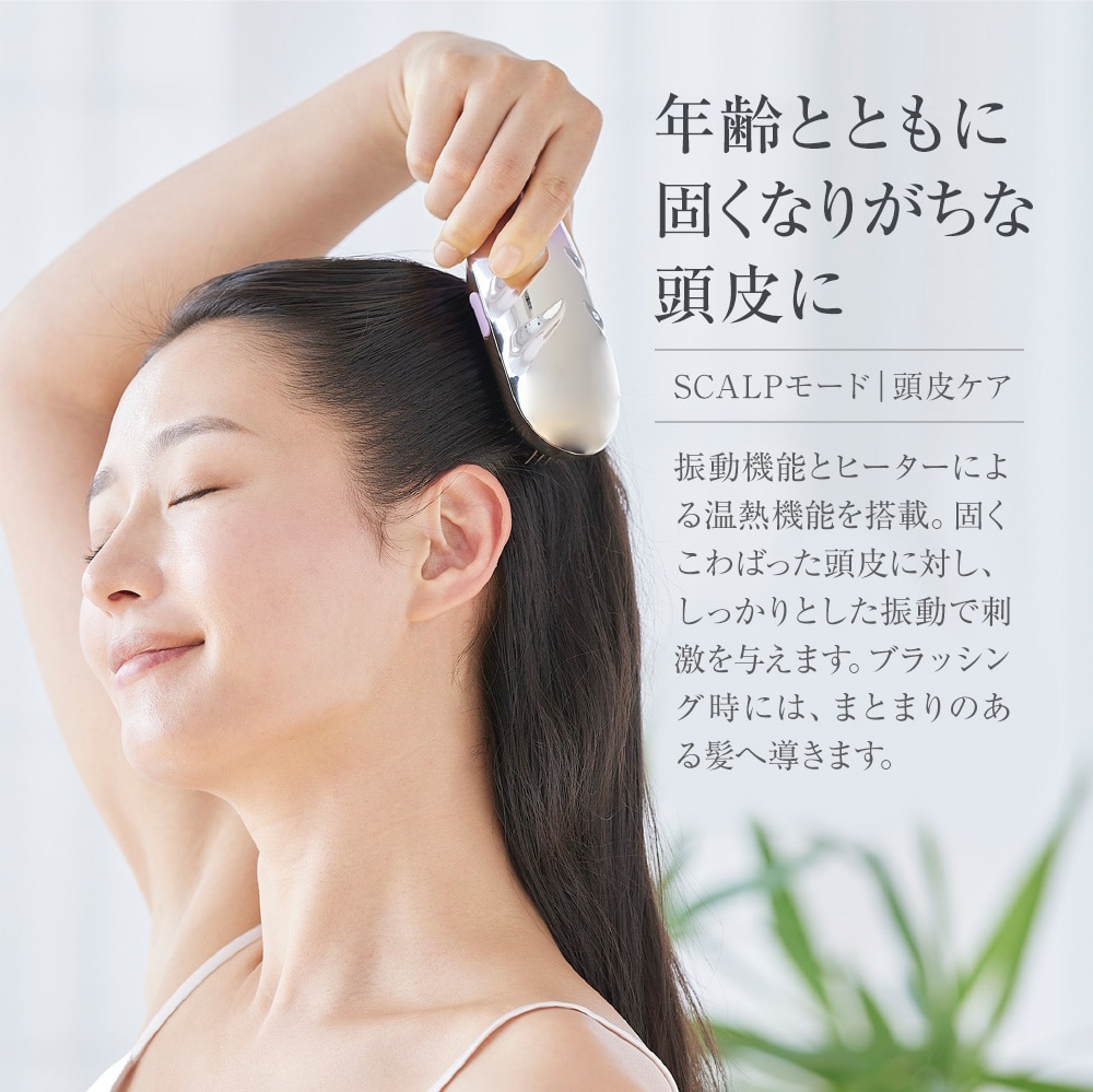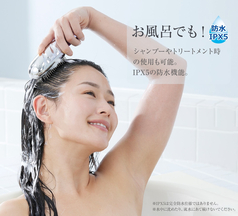 振動×ヒーター機能×EMS×マイナスイオンで頭皮・髪とお顔をしっかりケア。 マイナスイオンが発生するので、静電気を抑え、ツヤのある髪へ。 ◎防水IPX5