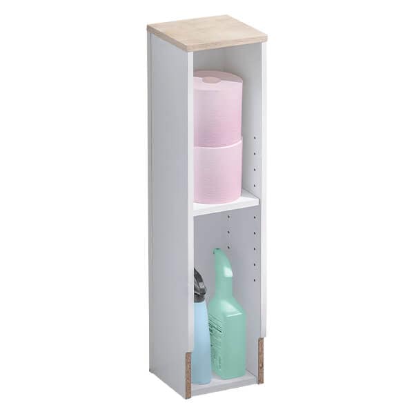 空間効率が上がる収納! トイレットペーパーや掃除道具をすっきり収納! トイレに置けるスリム設計! 小物が置ける 高さ調節可能な棚板
