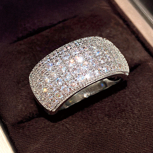 ダイヤモンドのような煌めきを放つジルコニアを敷き詰めたゴージャスリング! ずっしりとした重厚感と圧巻の輝きで大人の貫禄漂うメンズリング。 無骨な男の指に映えるボリュームリング。