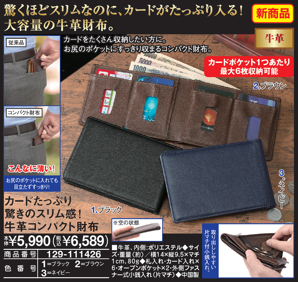 カードたっぷり驚きのスリム感!牛革コンパクト財布