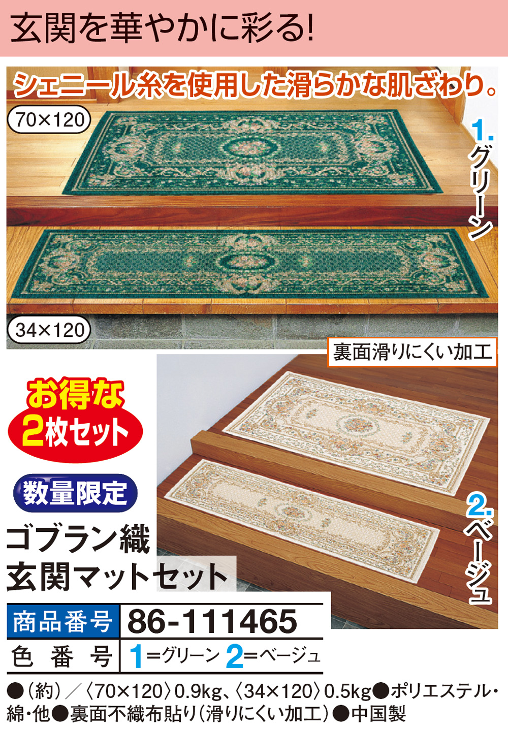 ゴブラン織玄関マットセット