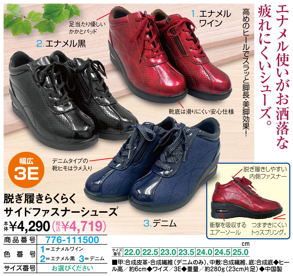 脱ぎ履きらくらくサイドファスナーシューズ