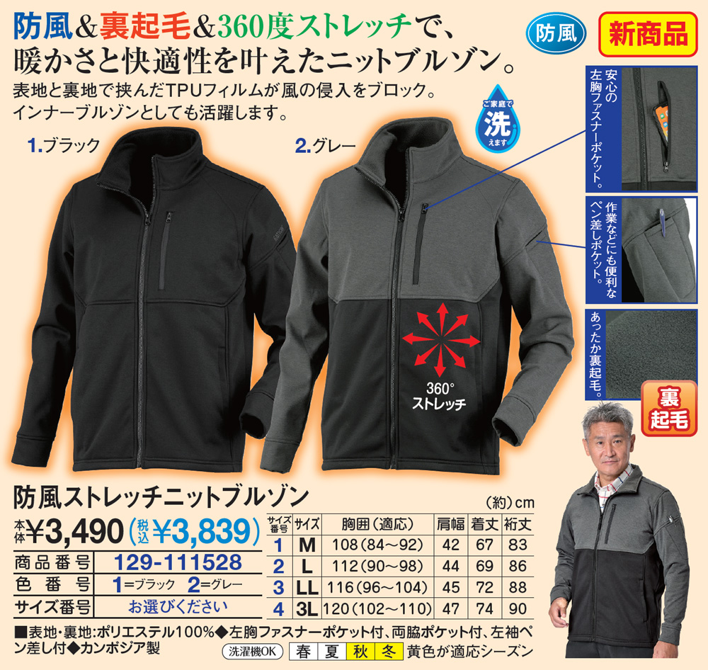 防風&裏起毛&360度ストレッチで、暖かさと快適性を叶えたニットブルゾン!