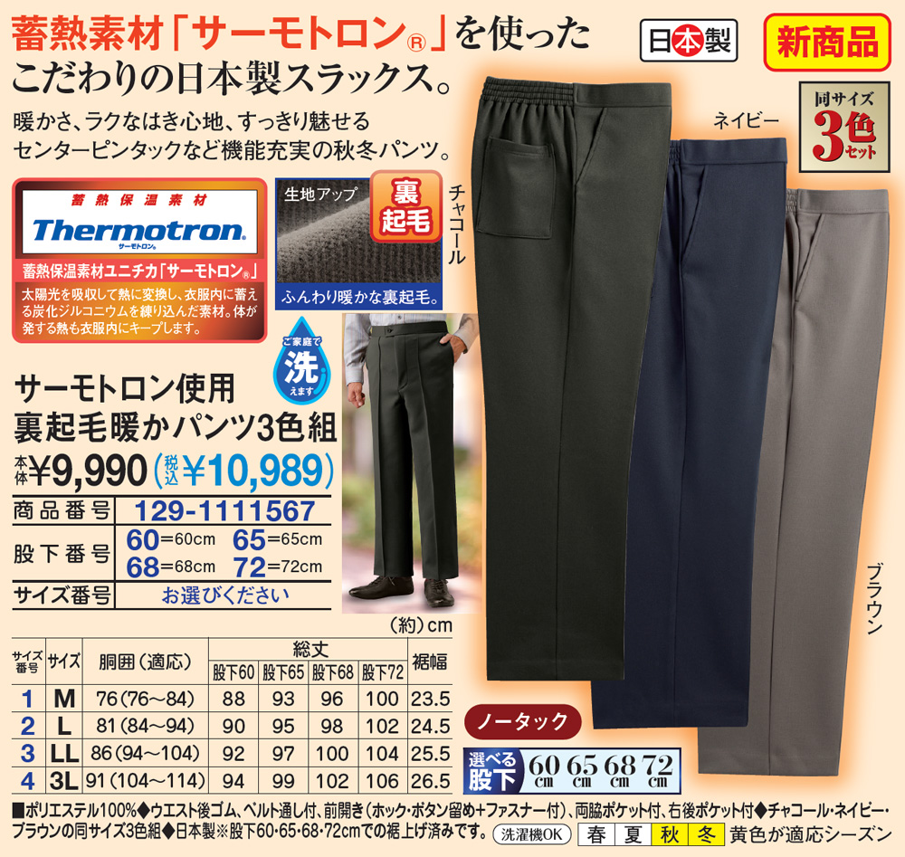 蓄熱素材「サーモトロン(R)」を使った日本製スラックス!