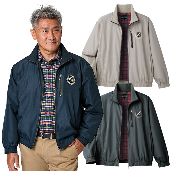 裏フリースで暖かい!エンブレム刺しゅうのカジュアルブルゾン!