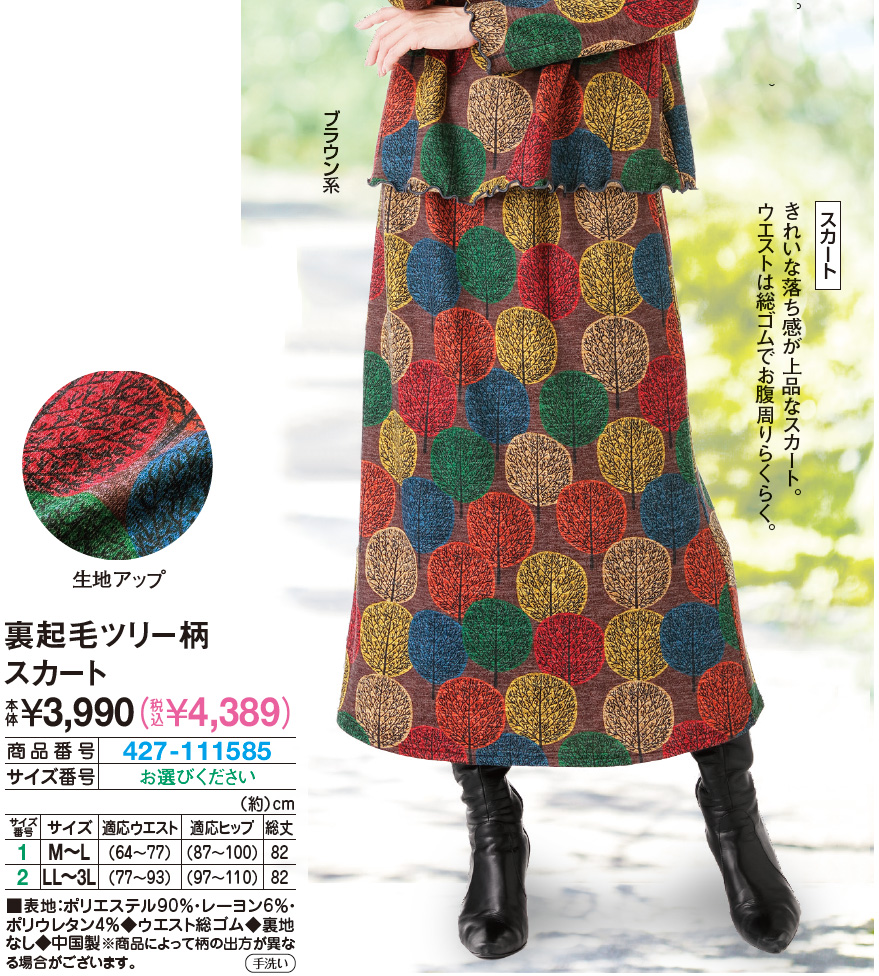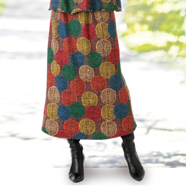 きれいな落ち感が上品なスカート。 ウエストは総ゴムでお腹周りらくらく。