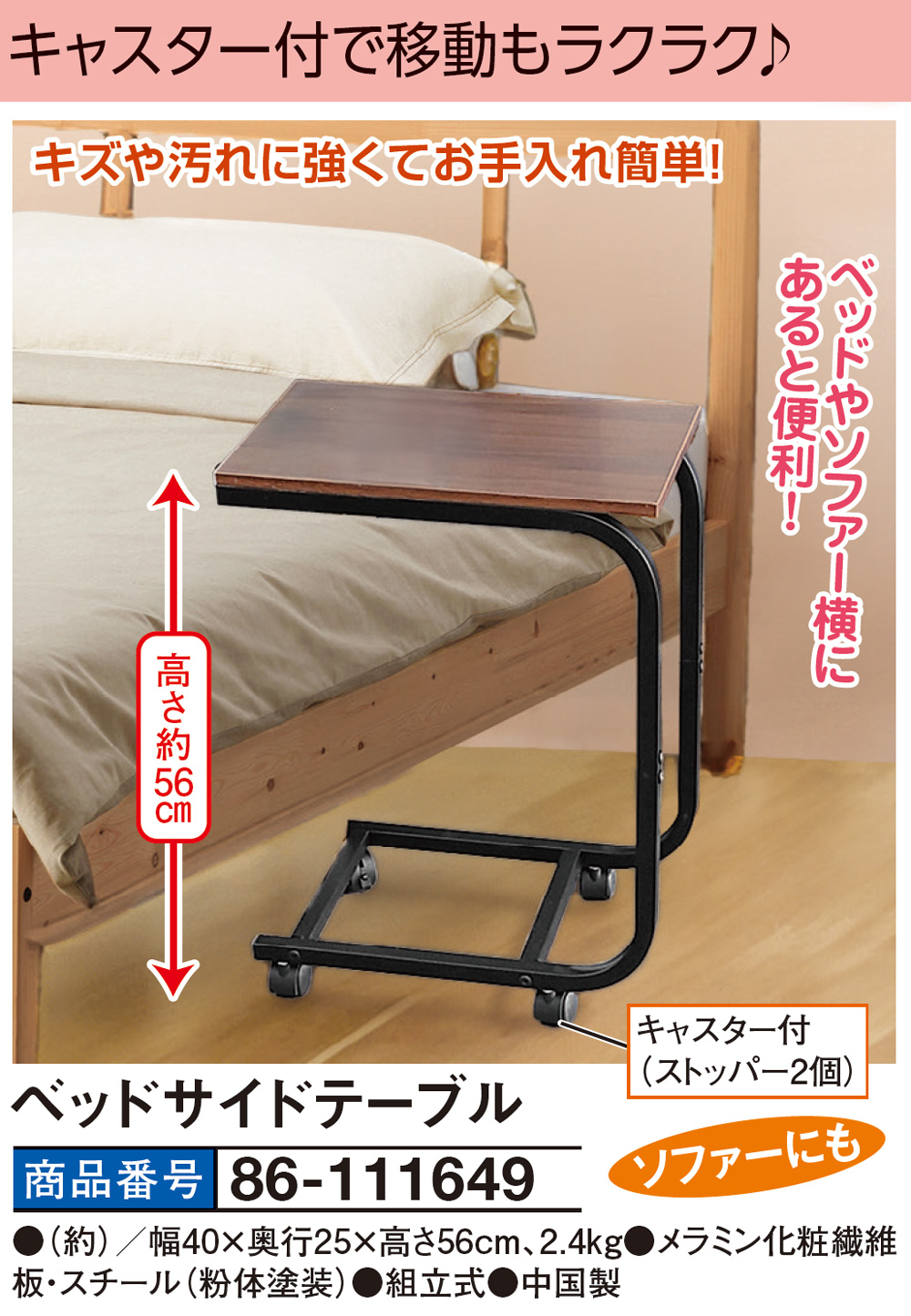 キャスター付で移動もラクラク! キズや汚れに強くてお手入れ簡単! ベッドやソファー横にあると便利! ●ソファーにも キャスター付(ストッパー2個)
