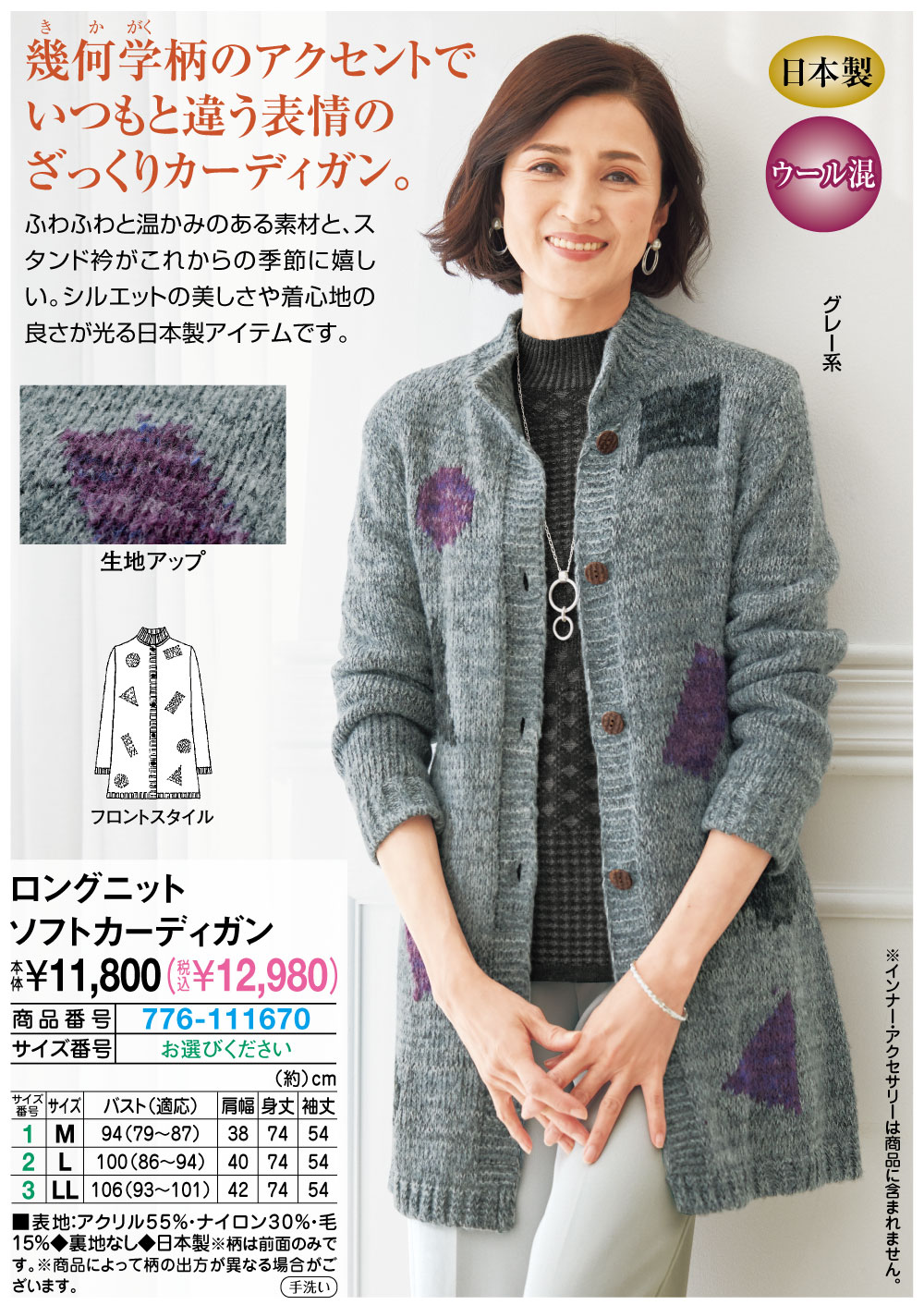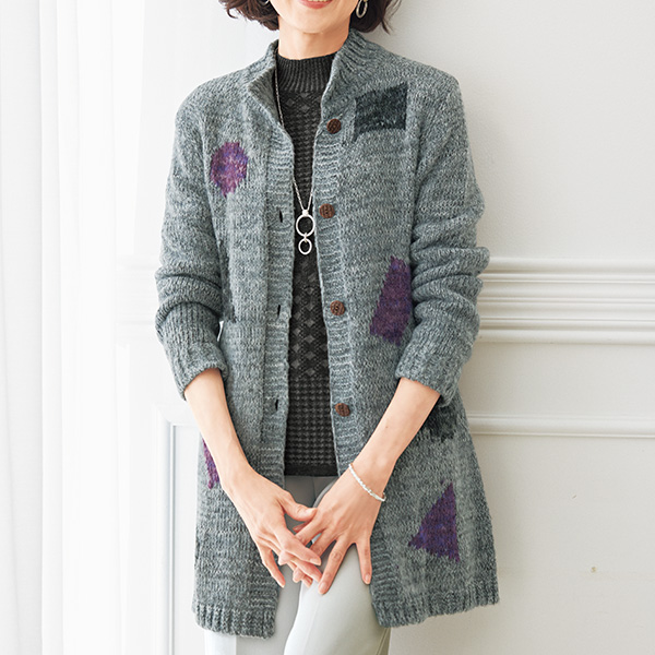 幾何学柄のアクセントでいつもと違う表情のざっくりカーディガン!