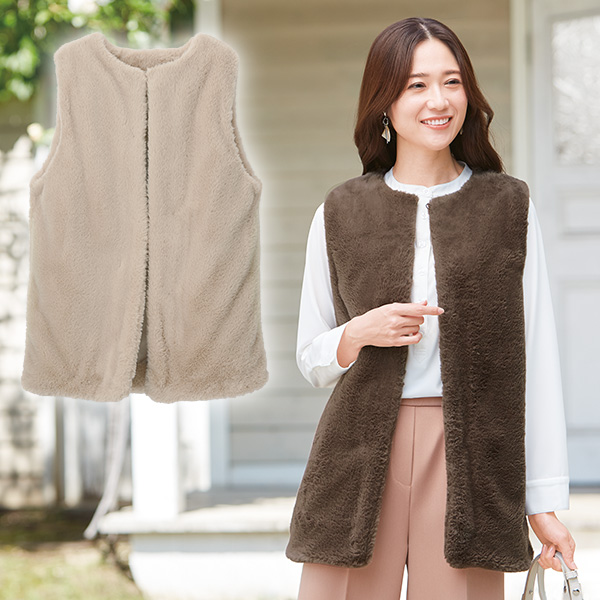 ふんわり柔らか、軽くてあったか! いつものコーディネイトに合わせてリッチで上品な装いに。 ロング丈で腰周りまですっぽりカバーします。 ホック付で前を閉じればすっきり着られます。