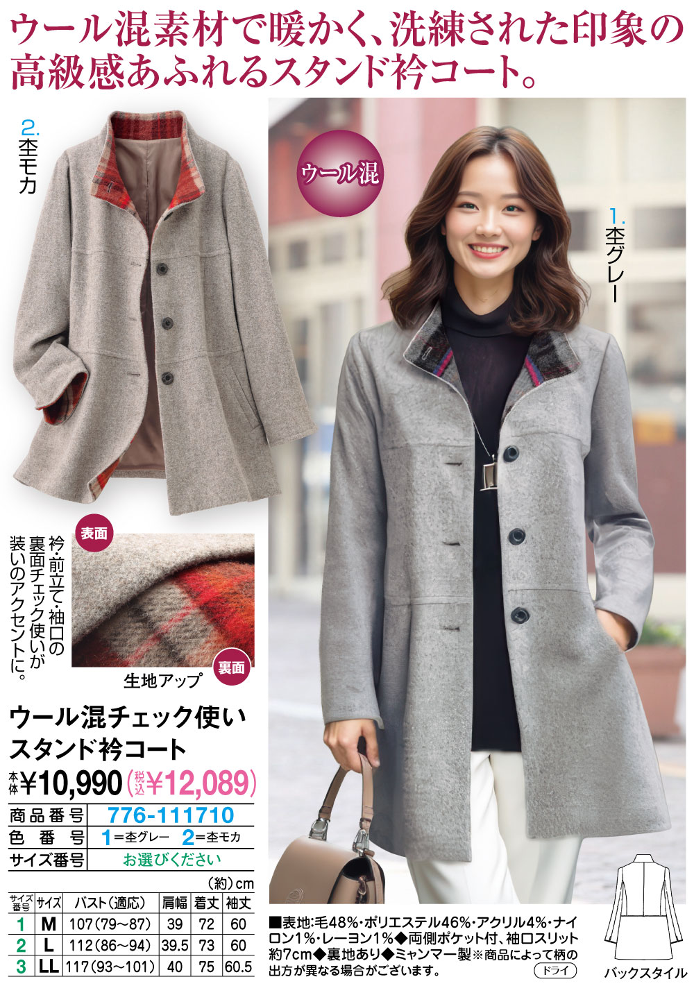 ウール混素材で暖かく、高級感あふれるスタンド衿コート!