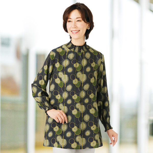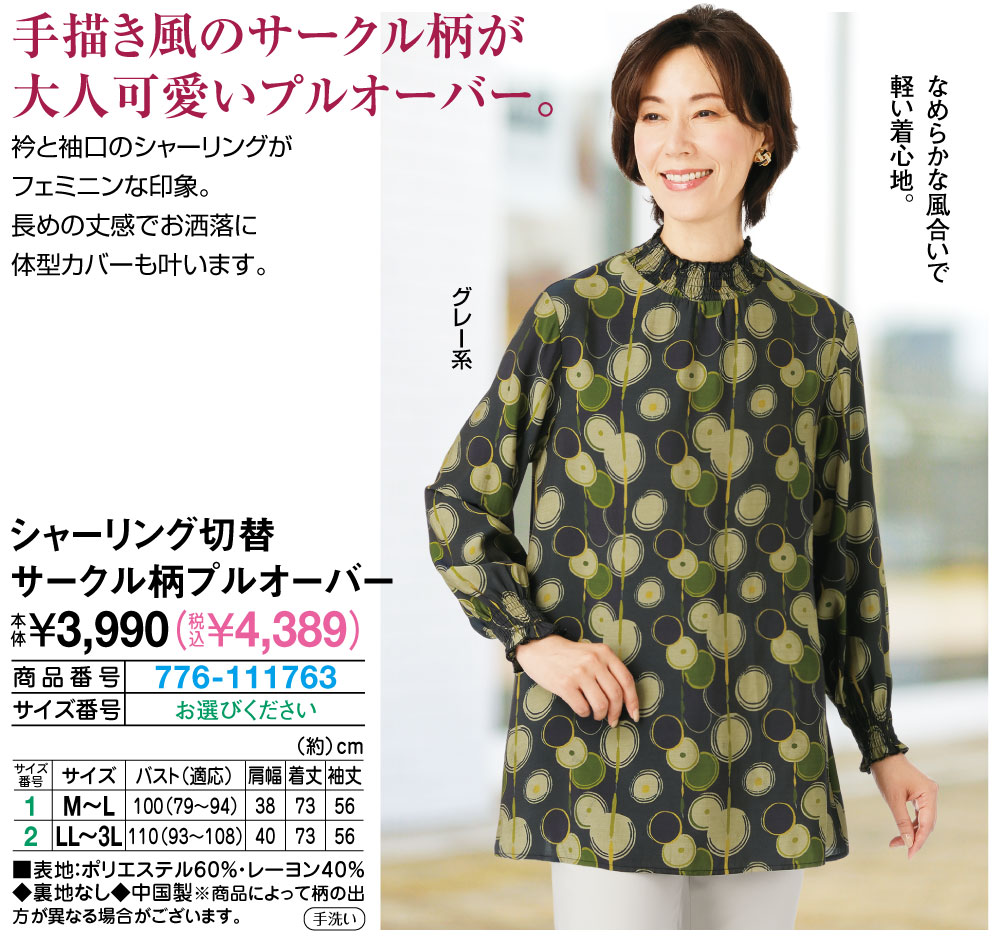 シャーリング切替 サークル柄プルオーバー