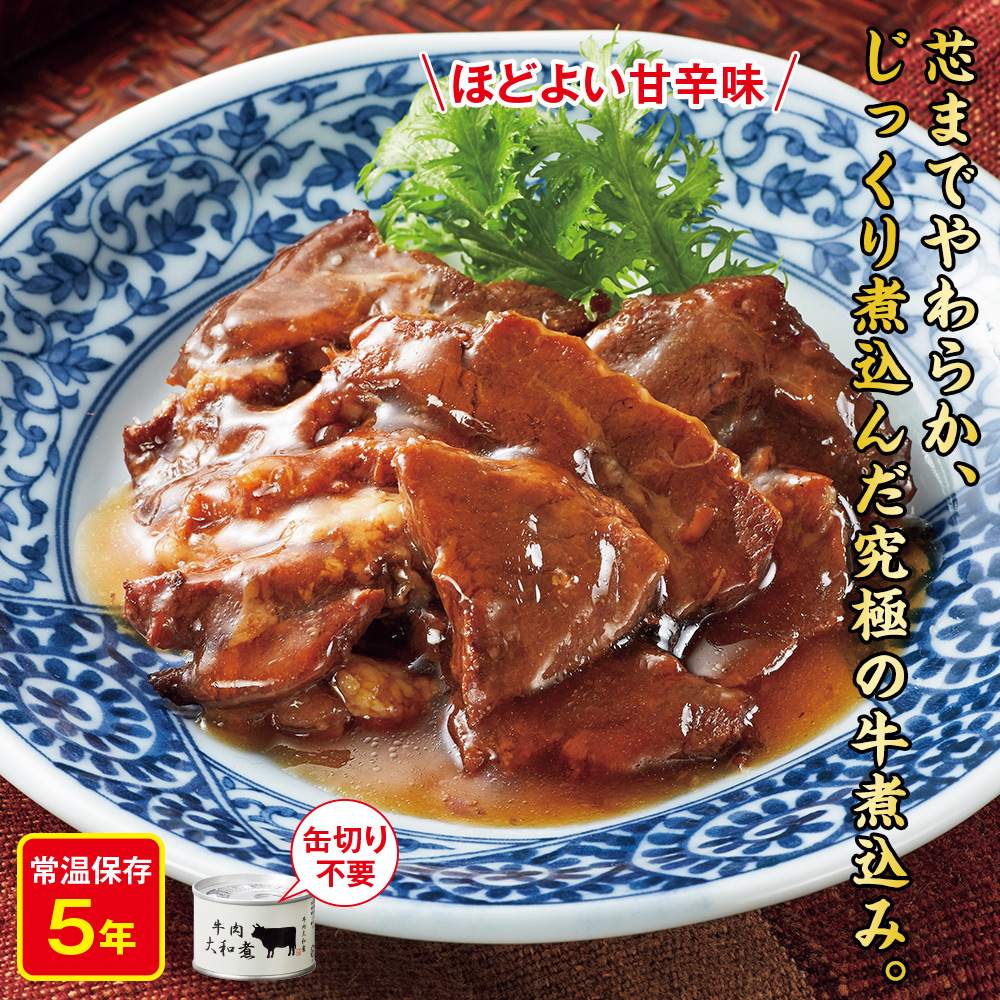 ほどよい甘辛味。 常温保存5年。 缶切り不要。