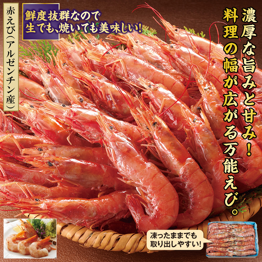 ●セット内容/2kg ●賞味期限/冷凍2026年5月 ●加工地/アルゼンチン ●原材料/赤えび ●特定原材料等 /えび