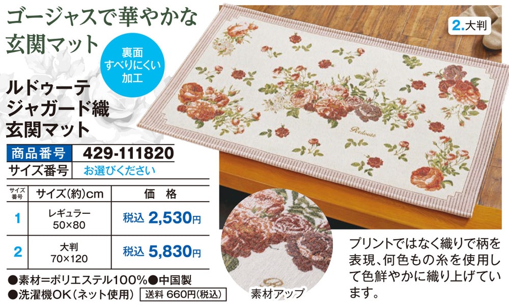●裏面すべりにくい加工 ●プリントではなく織りで柄を表現、何色もの糸を使用して色鮮やかに織り上げています。