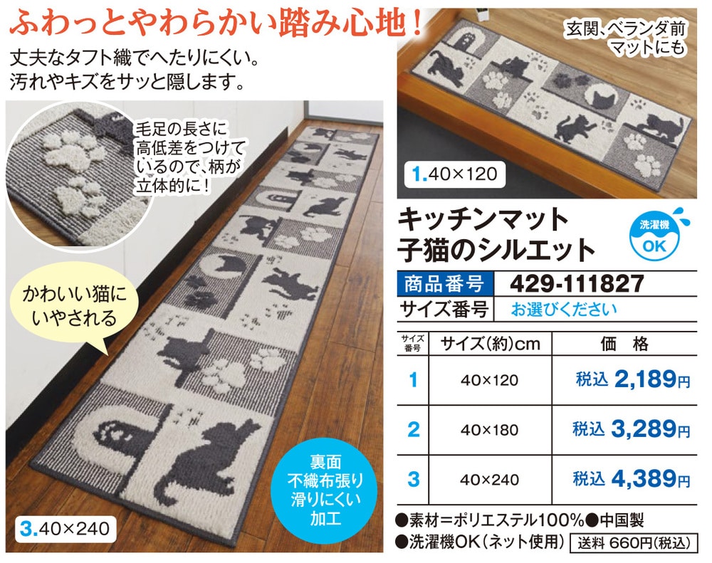 ●丈夫なタフト織でへたりにくい。 ●汚れやキズをサツと隠します。 ●かわいい猫にいやされる ●毛足の長さに高低差をつけているので、柄が立体的に!