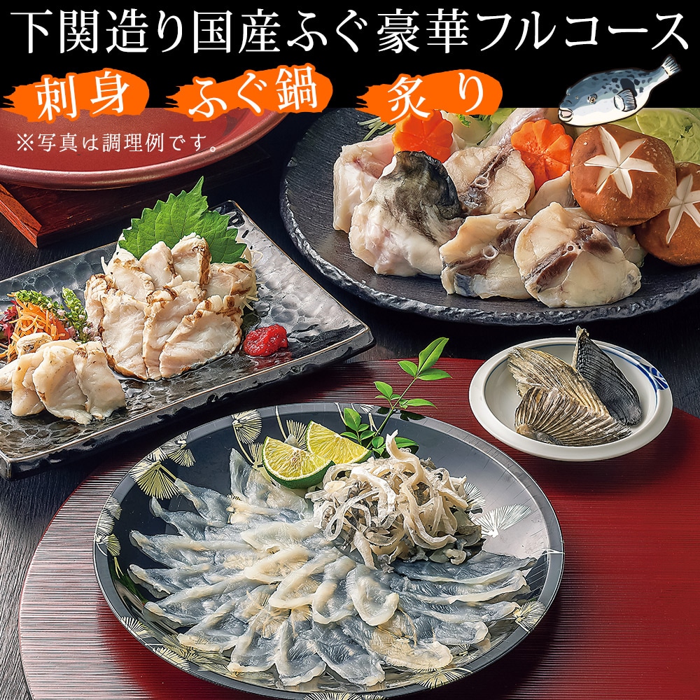 ●セット内容/<とらふぐアラ>300g<まふぐ切り身+アラ>350g<ふぐ炙り>50g<とらふぐ刺身>(60g×2)<とらふぐヒレ>3枚<ポン酢・もみじおろし>×6<スープ>×2 ●原材料/<とらふぐアラ>とらふぐ(長崎県産、養殖)<まふぐ切身+アラ>まふぐ(新潟県産)<ふぐ炙り>まふぐ(新潟県産)<とらふぐ刺身>とらふぐ(長崎県産、養殖)<とらふぐ干しひれ>とらふぐ(国産)<鍋だし>しょうゆ(大豆・小麦を含む)(国内製造)、食塩、昆布エキス、かつおぶし/調味料(アミノ酸等)、甘味料(甘草)<ポン酢>醤油(国内製造)、砂糖、醸造酢、ゆず果汁、日向夏みかん果汁、昆布エキス、かつお節エキス、酵母エキス/調味料(アミノ酸等)、甘味料(甘草)、(一部に大豆・小麦を含む)<もみじおろし>大根(国産)、唐辛子/アルコール、酸味料、モナスカス色素、増粘剤(グァーガム)、香辛料抽出物 ●賞味期限/製造日から冷凍6ヵ月 ●加工地/日本 ●特定原材料等 /小麦・大豆
