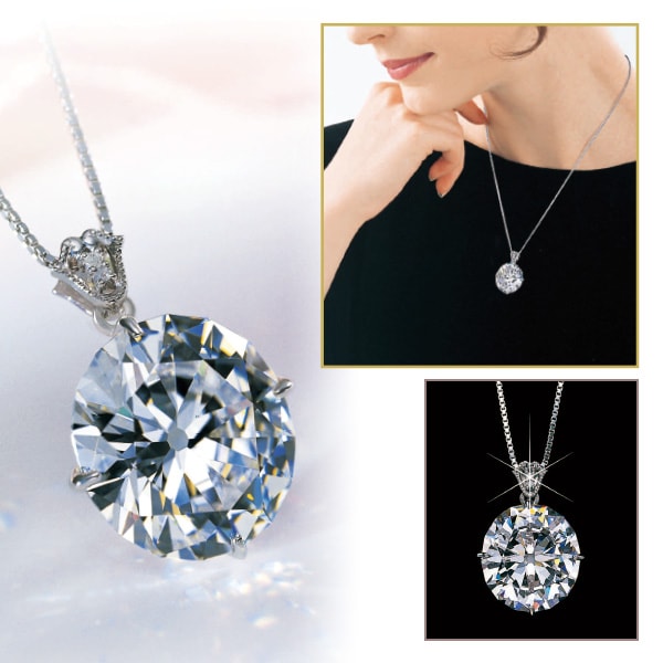 ●材質:ヘッド=ダイヤモンド2石(計約0.02ct)、米国セレス社製プレミアム・キュービック・ジルコニア(人造石)1石、チェーン=スターリング・シルバー925(ロジウム仕上げ) ◆サイズ(約):ヘッド=縦22×横20mm、チェーンの長さ=55cm ◆重さ(約):14g ◆留め具:引き輪式 ◆日本製
