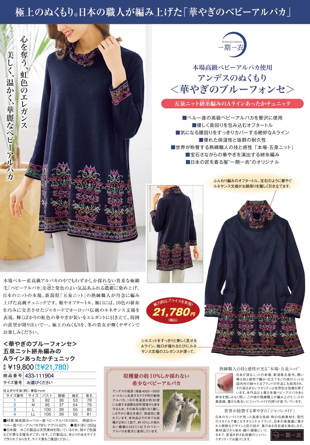 本場高級ベビーアルパカ使用 心を奪う、虹色のエレガンス。 美しく、温かく、華麗なベビーアルパカ。 ■ペルー産の高級ベビーアルパカを贅沢に使用 ■優しく首回りを包み込むオフタートル ■気になる腰回りをすっきりカバーする絶妙なAライン ■優れた保温性と抜群の耐久性 ■世界が称賛する熟練職人の技と感性 「本場・五泉ニット」 ■宝石さながらの華やぎを演出する絣糸編み ■日本の匠を着る服“一期一衣”のオリジナル
