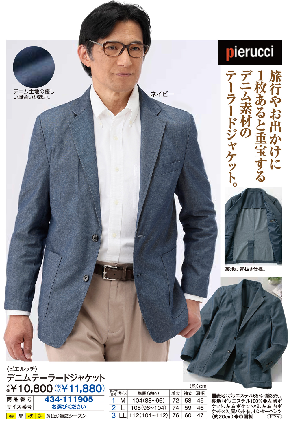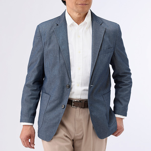 旅行やお出かけに1枚あると重宝するデニム素材のテーラードジャケット。 デニム生地の優しい風合いが魅力。 地は背抜き仕様。