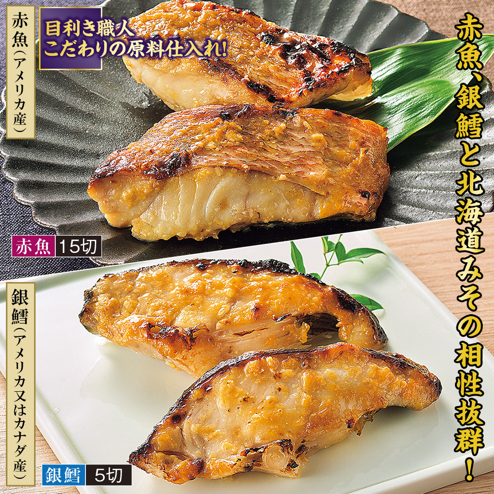 【赤魚(アメリカ産)】【銀鱈(アメリカ又はカナダ産)】 目利き職人こだわりの原料仕入れ! 北海道で漬け魚ひと筋40年の「丸加水産」が作る、漬け魚セットです。 こだわりの北海道みそで仕上げた逸品です。