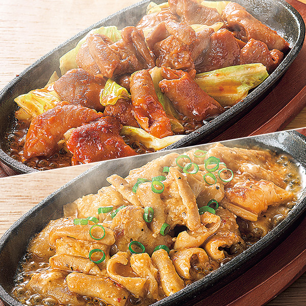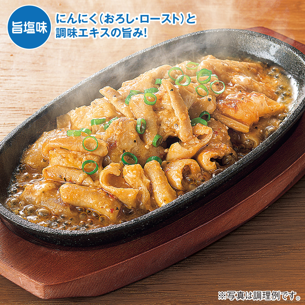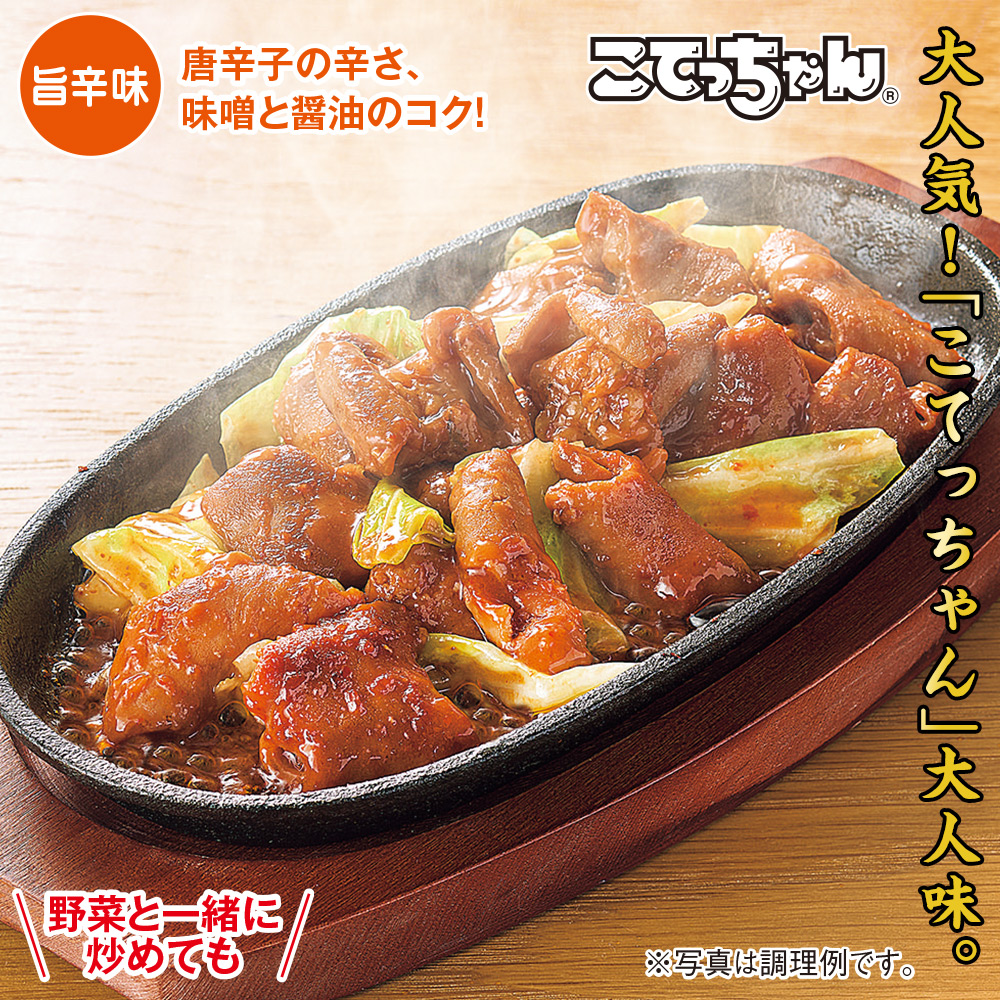 牛の小腸を使った味付けホルモン「こてっちゃん」をより大人向けにアレンジ。 2つの味をご用意しました。 牛ホルモンを旨辛、旨塩味で! 野菜と一緒に炒めても。 旨辛味 唐辛子の辛さ、味噌と醤油のコク! 旨塩味 にんにく(おろし・ロースト)と調味エキスの旨み!