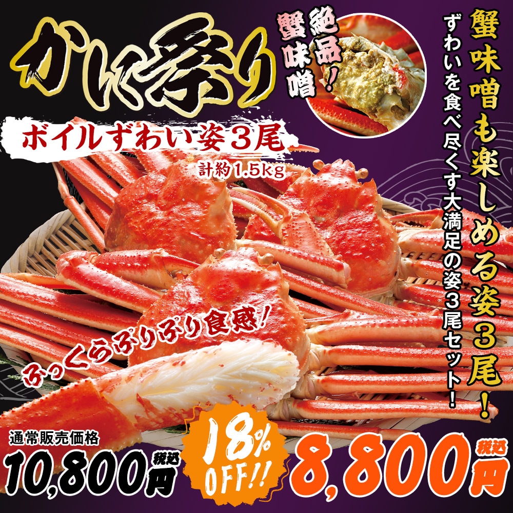 【ずわい蟹(カナダ産)】 ずわいを食べ尽くす大満足の姿3尾セット!