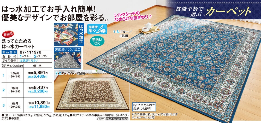 はっ水加工でお手入れ簡単!優美なデザインでお部屋を彩る!