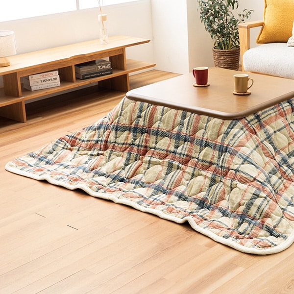 アルミシート入りの5層構造で薄いのに暖かい! 【あったか5層構造5層構造】 表地(フランネル)/蓄熱わた/アルミシート/ポリエステルわた/裏地(フランネル) 蓄熱わたで暖かさをキープし、 UP 蓄熱わたで暖かさをキープし、 アルミシートでこたつ内の熱を外に逃がさない! ●5層構造で保温力UP。 \1枚でもあったか/ 表地も裏地も肌ざわりの良いフランネル素材。 薄手だからコンパクトに収納できる! ●蓄熱(中わた)