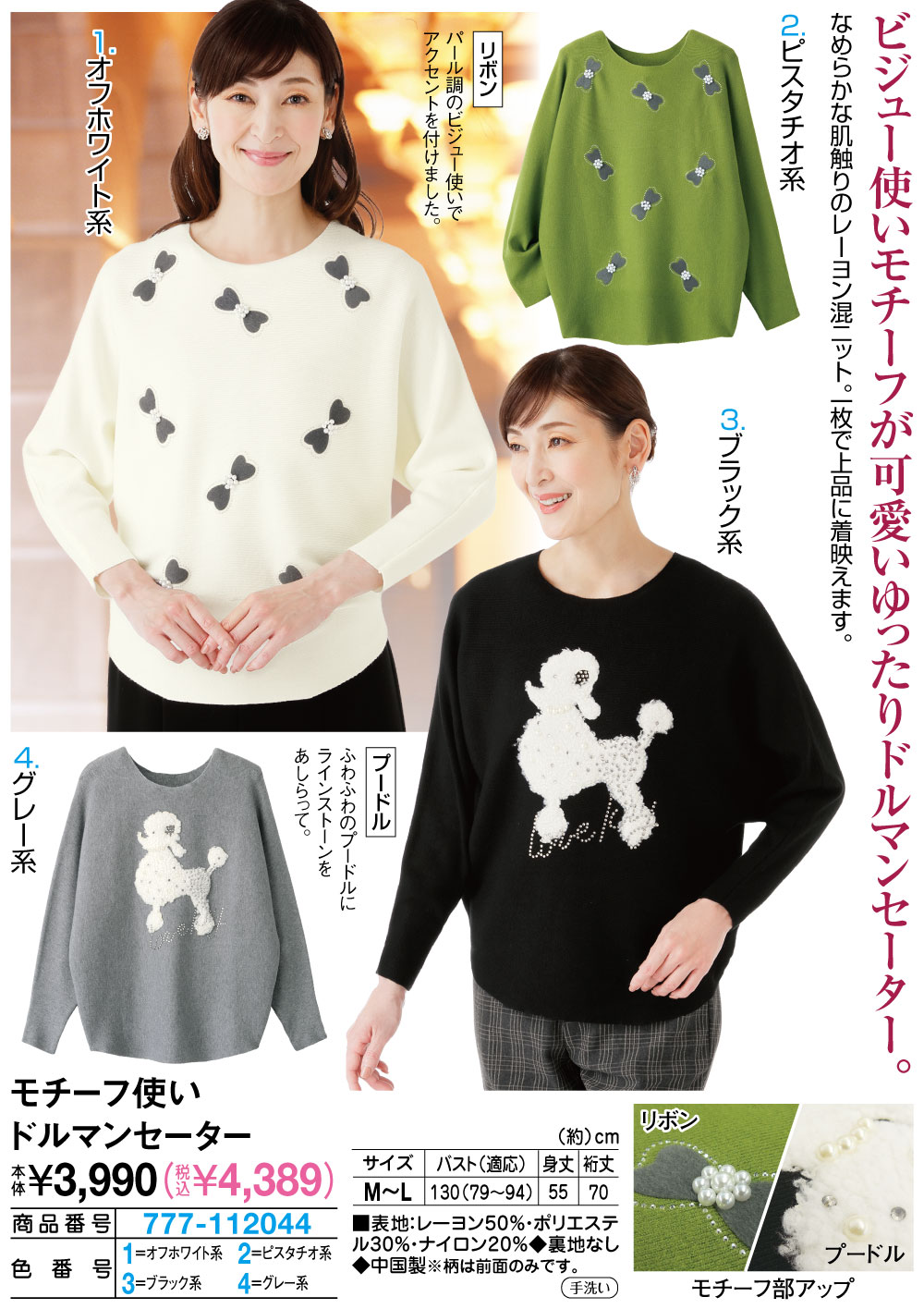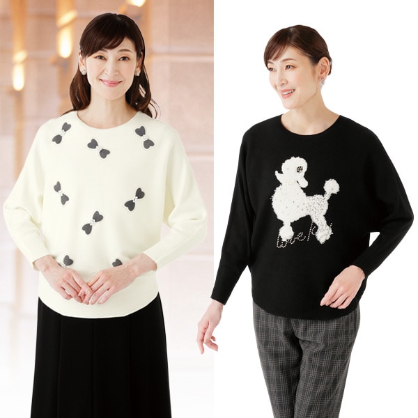 ビジュー使いモチーフが可愛いゆったりドルマンセーター!