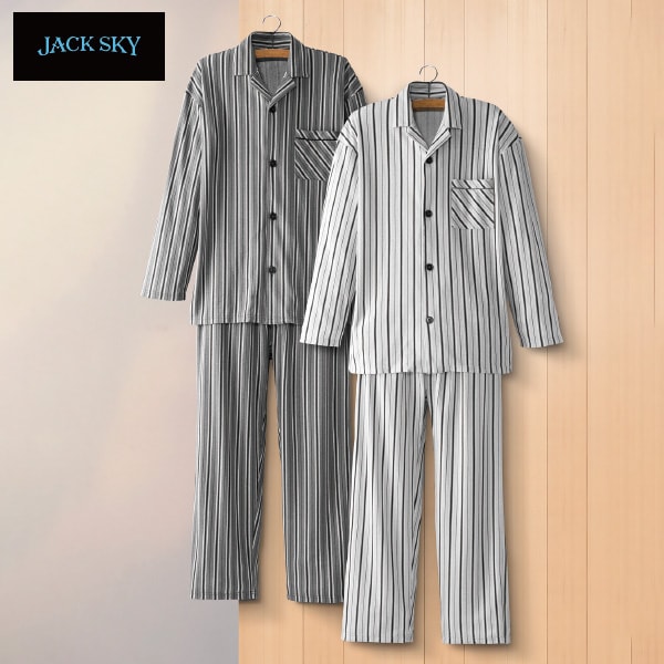綿混素材で肌触りが良く、ストライプ柄が爽やかな紳士パジャマ2色組! シックな色味で洗練された印象に。 洗濯後も乾きが早く、型崩れしにくい実用性も魅力です。 肌触りの良い大人のナイトウェア。 ウエストゴム取替口付。 ●同サイズ2色セット
